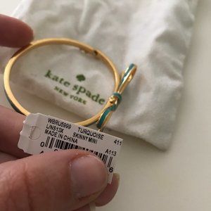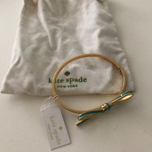 NWT Kate Spade teal and gold bow bangle bracelet with original dust bag.