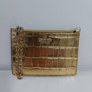 Brand new with tags Kate Spade White Rock Road Caroline wristlet. This has a gorgeous croc print in all gold leather. The wristlet is very small and the chain is slightly adjustable. This can fit standard size cards.