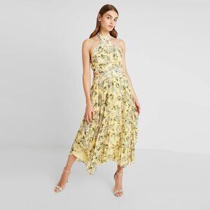 NWT Keepsake The Label Luscious yellow floral halter long dress with trim and cutouts
