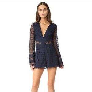 NWT Keepsake the Label All Night navy blue lace-like long sleeve romper, M