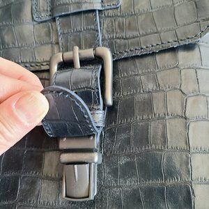 NWT Kenneth Cole Collection navy leather briefcase.