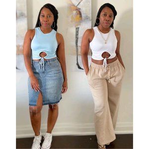 (NWT) Keyhole Tie-Up Sleeveless Top - White