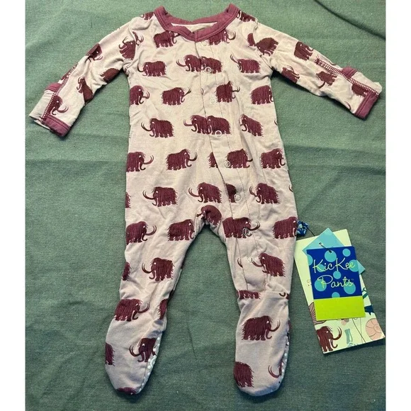 Adorable mammoth print footie in pink. New with tags. Would make an adorable gift. Please look at pics and ask all questions before purchasing.