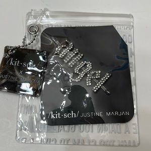 Kitsch x Justine Marjan bobby pin. Says “angel” in gothic font. Hematite plating with pave rhinestones. Brand new, still in original package.