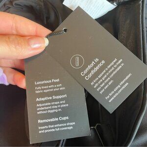 NWT Knix Bikini Deep V Bikini Top & High Cut High Rise Bikini Swim Bottom Black in excellent new condition. Wireless bikini top designed with a flattering deep V neckline. Features wide, adjustable straps for comfort and support. Flattering, high-rise bikini bottom with a cheeky cut and gentle tummy-smoothing compression. Made from sculpting, quick-dry fabric with UPF 50+ protection. Please see all photos.