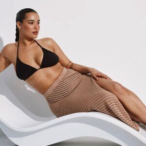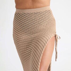 NWT Knix Crochet-Knit Maxi Beach Skirt Cover-Up Taupe Tan M/L