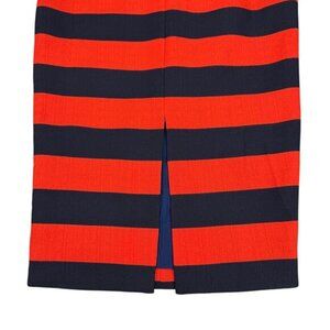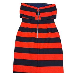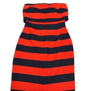 NWT LAVISH ALICE Bandeau Strapless Midi Fitted Dress Sz 4 Orange Navy Striped
