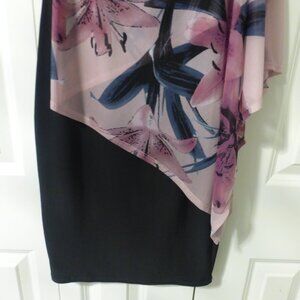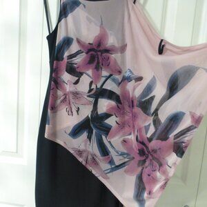 NWT LE CHATEAU black dress with pink and purple chiffon flowy floral layer