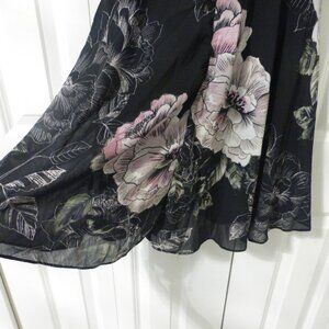 NWT LE CHATEAU black & pink floral flutter sleeve dress