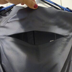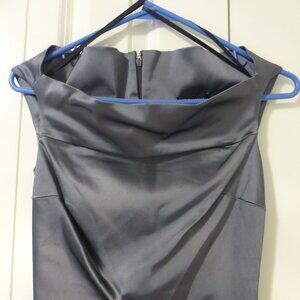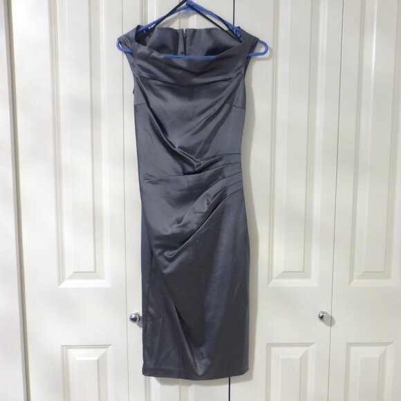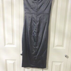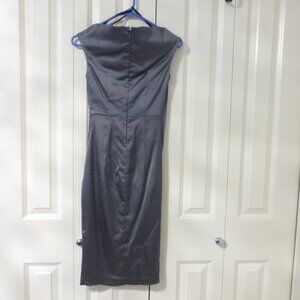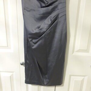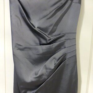 NWT! Awesome gunmetal grey! Smooth satin material, ruching in the front, zips up in the back. Perfect dress for your next party, wedding, cocktail party or semi-formal event!