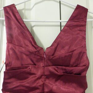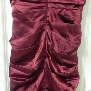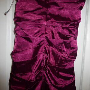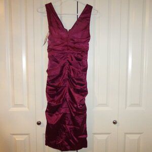 NWT LE CHATEAU reddish plum silky satin ruched cocktail party dress