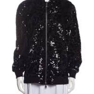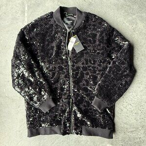 NWT - LE SUPERBE - Grand Prix Animal Print Sequin Bomber Jacket - L - Black