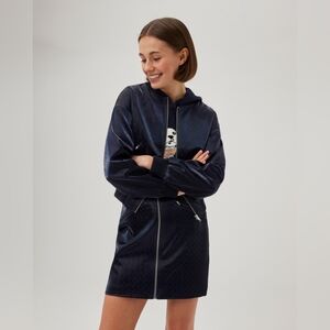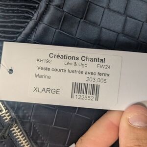 NWT ! LEO & UGO Gina Jacket Navy Blue Glossy Size 5 = XL Perfect For Fall !