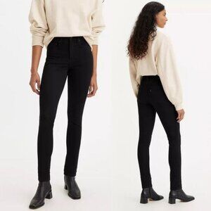 NWT LEVI'S Premium 721 High Rise Skinny Jean Size 25 x 32 Black Leather Patch
