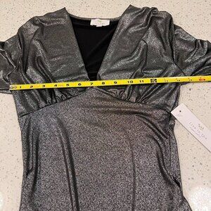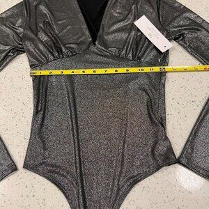 NWT LIVE IN THE MOMENT Metallic Shimmer Dark Silver Bodysuit Size M Deep V