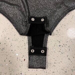 This is a gorgeous bodysuit in such a high quality metallic dark silver shimmer material! Would be amazing at the club or under a blazer for a little splash of fun