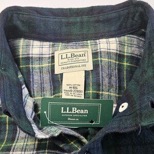 NWT LL Bean Flannel Shirt Mens Traditional Fit Scotch Plaid Green Patchwork M