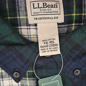 NWT LL Bean Flannel Shirt Mens Traditional Fit Scotch Plaid Green Patchwork XXL