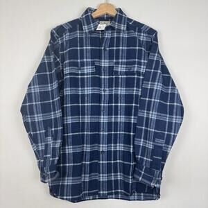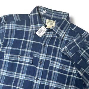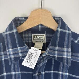 NWT L.L. Bean Traditional Fit Navy Blue Plaid Flannel Shirt 100%Cotton Sz S $115