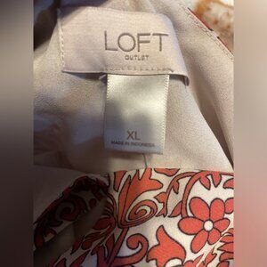 NWT LOFT Y2K Floral Peach Cream Blouse XL Cottage Preppy Career Travel