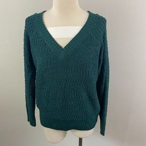 NWT LOVE BY DESIGN Green Dark Sea V Neck Teddy Sweater (S)