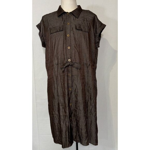 NWT LULAROE Stacie Chambray Collection Charcoal Gray Belted Shirt Summer Dress Pockets Sz XL