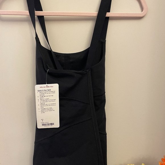 Here listed is a Lululemon Work it Out tank top, black color, size 8, brand new with tags.
