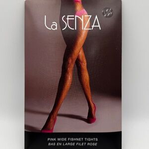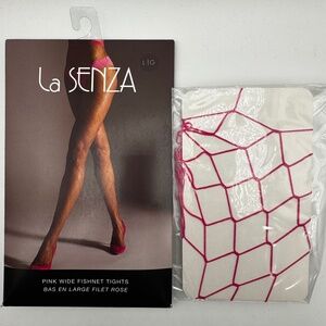 New in Box - La SENZA Hot Pink Wide Fishnet Tights with high waist. Made in Italy. Women's size L. Perfect for dressing up, adding a punk vibe to your wardrobe, or accentuating a costume for halloween or cosplay. Bag removed from box for photo only.