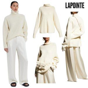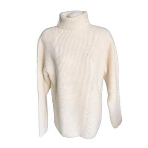 NWT - LaPonte Airy Cashmere Silk Ribbed Turtleneck Sweater in Cream Color Size S