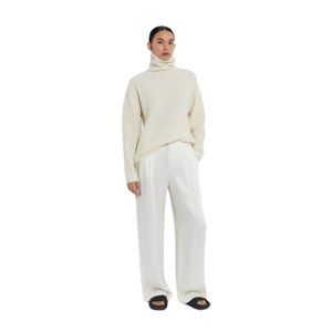 Sally LaPointe brings her statement-making aesthetic to this wardrobe-staple turtleneck knit for an oversized fit from cashmere-silk yarn in a neutral hue.