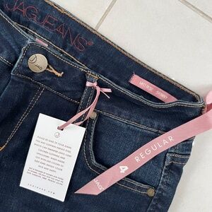 New With Tags Ladies dark blue comfy soft JAG brand jeans. Size 4. They are Mid Rise Skinny Jeans. Style "Sheridan Skinny". Colour Indigo". Inseam 30". From a non-smoking, non-pet home.