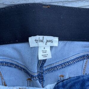 If you have never tried Tribal Jeans Comfort Waist this is the jean for you! Luscious soft thin denim with a beautifully thought out elastic waist gives a small waist line with a comfort fit. The tag is listed as an ankle jegging but these are not pull on jeans as they have a button and zipper at the front. Style number 61040–1385. From a smoke free pet free home