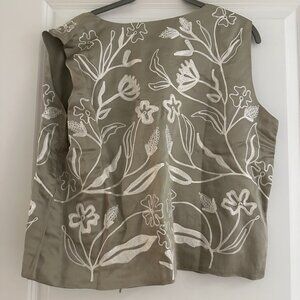 NWT Laude the Label Embroidered Tie Front Vest - Putty Flora - Small (S)