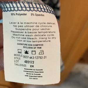 New with tags. Stylish cowl neck top with a beautiful floral pattern. Features shades of blue and gray. Size 2X. Has stretch.