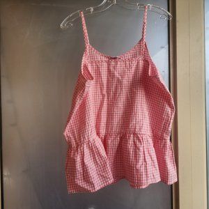 Gingham pink and white top with adjustable straps, size large, non smoking home, fun and flirty, with a retro feel.