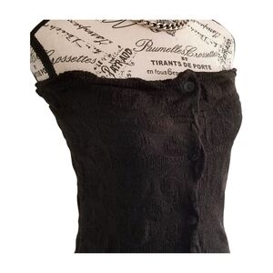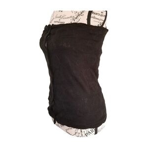 NWT Lauren Vidal Merino Wool Button-Up Tube Top – Black Knit, Raw Edge Finish