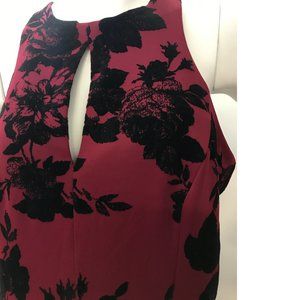 MADE IN USA NWT ORIGINAL LeChateau hard to find old stock. Stunning burgundy red mermaid floor length dress with black flocked flowers. Peekaboo halter neck, open back.