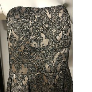 NWT Le Chateau PLUS SIZE Jacquard Fit & Flare Dress Champagne Gold Black…