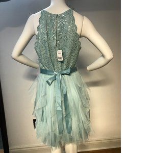 NWT Le Chateau lace sequin tulle mesh sparkly dress mint green seafoam blue …