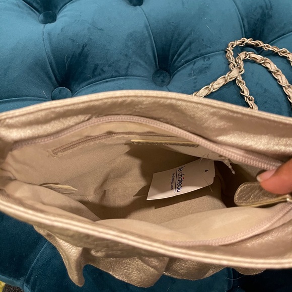 Cute ruffle metallic purse with chain straps and one pocket on the inside
