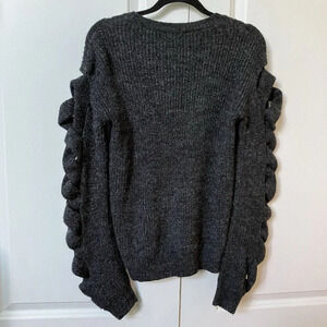 Leith Braided Twisted Sleeve Charcoal Knit Sweater Womens Small