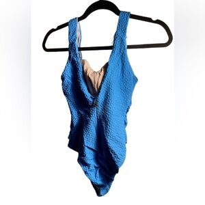 NWT Leonisa Blue One Piece Belted Flirty Slimming Moderate Coverage Swimsuit M