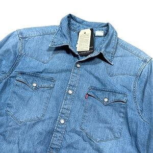NWT Levi's Barstow Western Standard Pearl Snap Button Blue L/S Shirt Mens Small