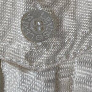 Classic meets cool in this Levi’s Western-style short-sleeve shirt, brand new with tags. Featuring dual flap pockets, a crisp collar, and signature snap button closures, this versatile piece offers a clean, structured look with authentic cowboy-inspired charm. Perfect for layering or styling with denim cutoffs and boots for that modern cowgirl vibe.