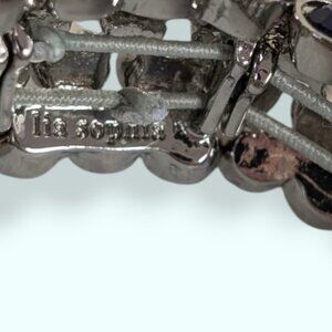 This stretch bracelet by Lia Sophia is new with the tag (NWT) and does not appear to have any wear. The bracelet is made up of silver tone metal links strung on a stretchy cord and features dark and light blue circles on the outside. The circles feel like enamel, but I can't confirm that is the case. This bracelet style appears to have been retired and is not as easy to find as others. Very cute bracelet!