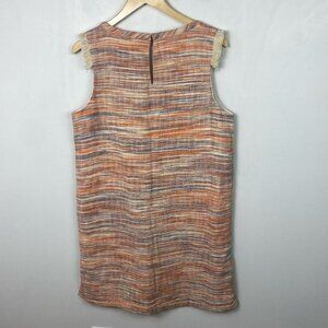Anthropologie Lilla P Slub Tweed Casual Dress in Newport Orange Combo and Women's Size Large. 100% cotton. Sleeveless. Pullover style with straight hem. Fringe detail at the sleeves. Keyhole button back closure. Side slits. Scoop neck. Retails for $188 USD (approximately $261 CAD). Brand new with tags! No flaws.