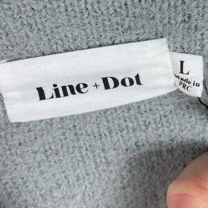 Line & Dot Fuzzy Adler Sweater in Heather Grey and Women's Size Large. Fuzzy knit. Long puff sleeves. Pullover style. Mock neck. 80% nylon and 20% acrylic. Brand new with tags! No flaws.
