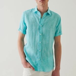 NWT Linen Patrick Assaraf Mauvey Pink Short Sleeve Shirt Harry Rosen M