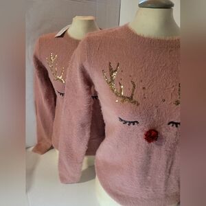 NWT Lipsy Pink Crew Neck holiday Christmas Sweater with Reindeer Design x-mas