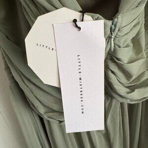 NWT Little Mistress Plus Size Bridesmaids Bardot Mesh Midi Dress - Sage Green